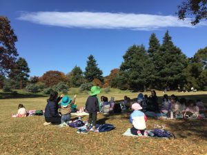 子ども達だけで初めての遠足でした。青空の下で食べるお弁当はとっても美味しいね。