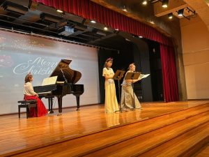 12月12日(金) 今日は幼稚園遊戯室で、冬のコンサートを開催しました。 今回は国立音楽大学大学院修士課程の院生による声楽の演奏を楽しみました。 第1部は未就園児親子の皆さんがたくさん聴きにきてくれました。 第2部は在園の子どもたち、第3部は保護者の方を対象にクリスマスの歌をたくさん歌っていただきました。