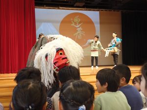 始業式ではスペシャルゲストの獅子舞がやってきました。