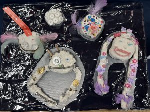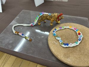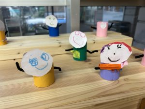 子どもたちが普段遊んで残ったものから、教師が子どもたち一人ひとりと向き合い、色々な素材で表現したものの展示がありました。