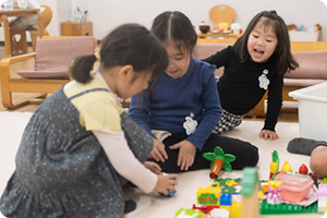 保護者の皆様の保育ニーズに対応することを目的としています。預かり保育は保育室「メープル」で実施し、子どもたちは通常の保育の流れを汲みつつ、家庭的で落ち着いた雰囲気の中で、異年齢の友達と一緒に遊びます。
