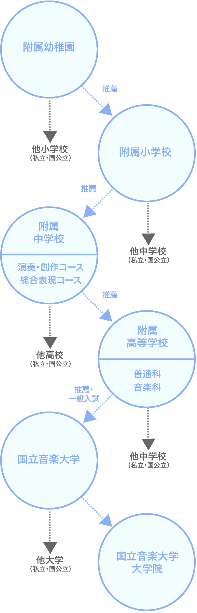 国立音楽大学は「自由・自主・自律」の教育理念のもと、幼稚園から大学までの一貫教育を行っています。