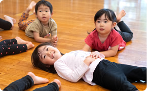 リトミックは裸足で行います。お子さんも保護者の方も靴下でお越しください。